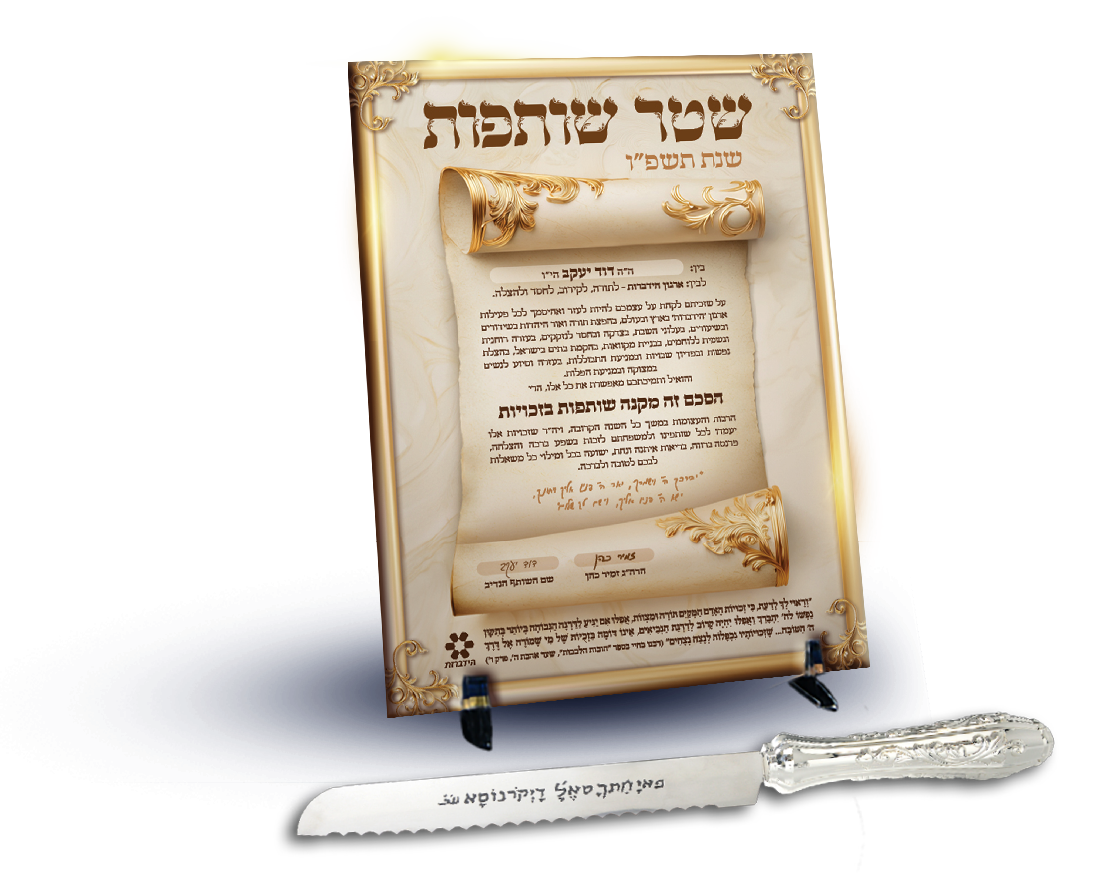 חותמים עכשיו על שטר שותפות – בעל תוקף הלכתי מלא! עם הידברות ומורנו הגאון הגדול הרב זמיר כהן שליט"א – בזיכוי הרבים הגדול בעולם, כדי שכל הזכויות יהיו שלכם ותכתבו ותחתמו לשנה טובה.
